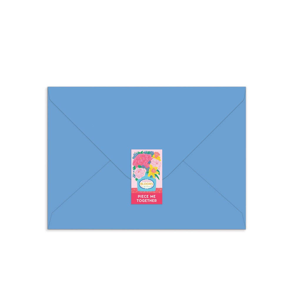 The Blooms of Love Greeting Card Puzzle from Galison is a 60-piece postcard puzzle featuring a beautifully illustrated bouquet of flowers. Package comes with the puzzle fully assembled. Write the message on the back, break up the pieces, place in the envelope and mail. The perfect greeting card surprise to send to family and friends!