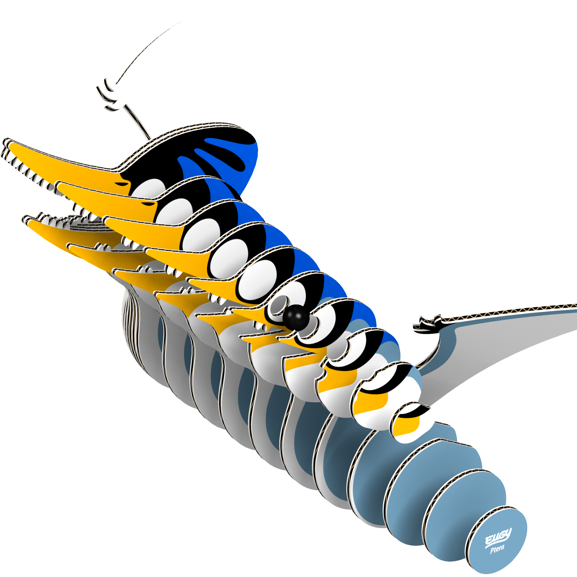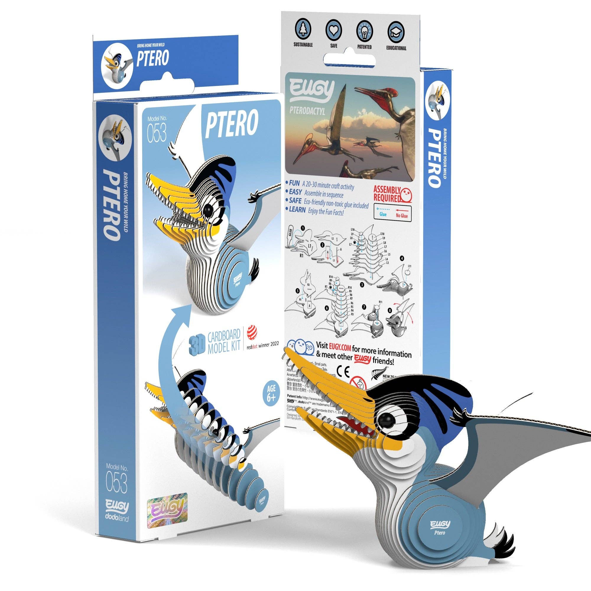 EUGY - a super-fun 3D puzzle that's eco-friendly and can be assembled in 10 to 20 minutes! This collectable toy is great for STEM concepts and craftable fun. The Pterosaurs were a group of prehistoric reptiles - not dinosaurs - that developed wings to help them soar through the skies. While some Pterosaurs were toothless, others - like the one represented by this adorable 3D puzzle - had beaks full of teeth. A perfect arts and craft activity to help pass some time and teach following instructions.