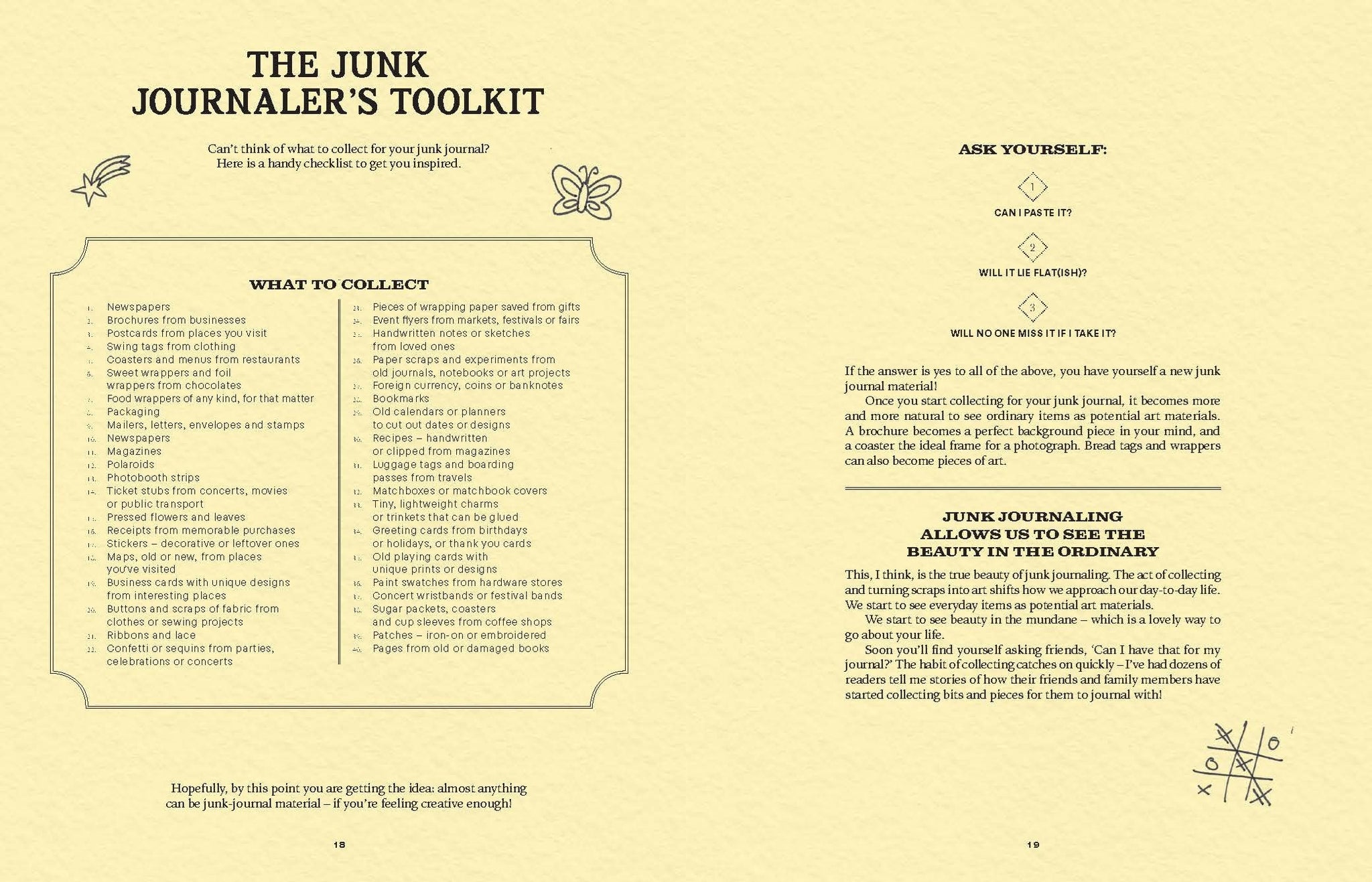 Whether you’re brand new to junk journaling or already hoard paper scraps and washi tape, this book will gently guide you through a year of playful, imperfect creativity: