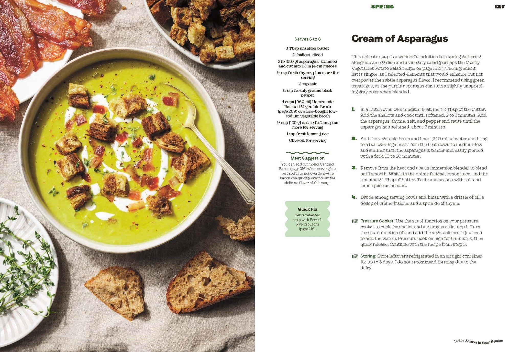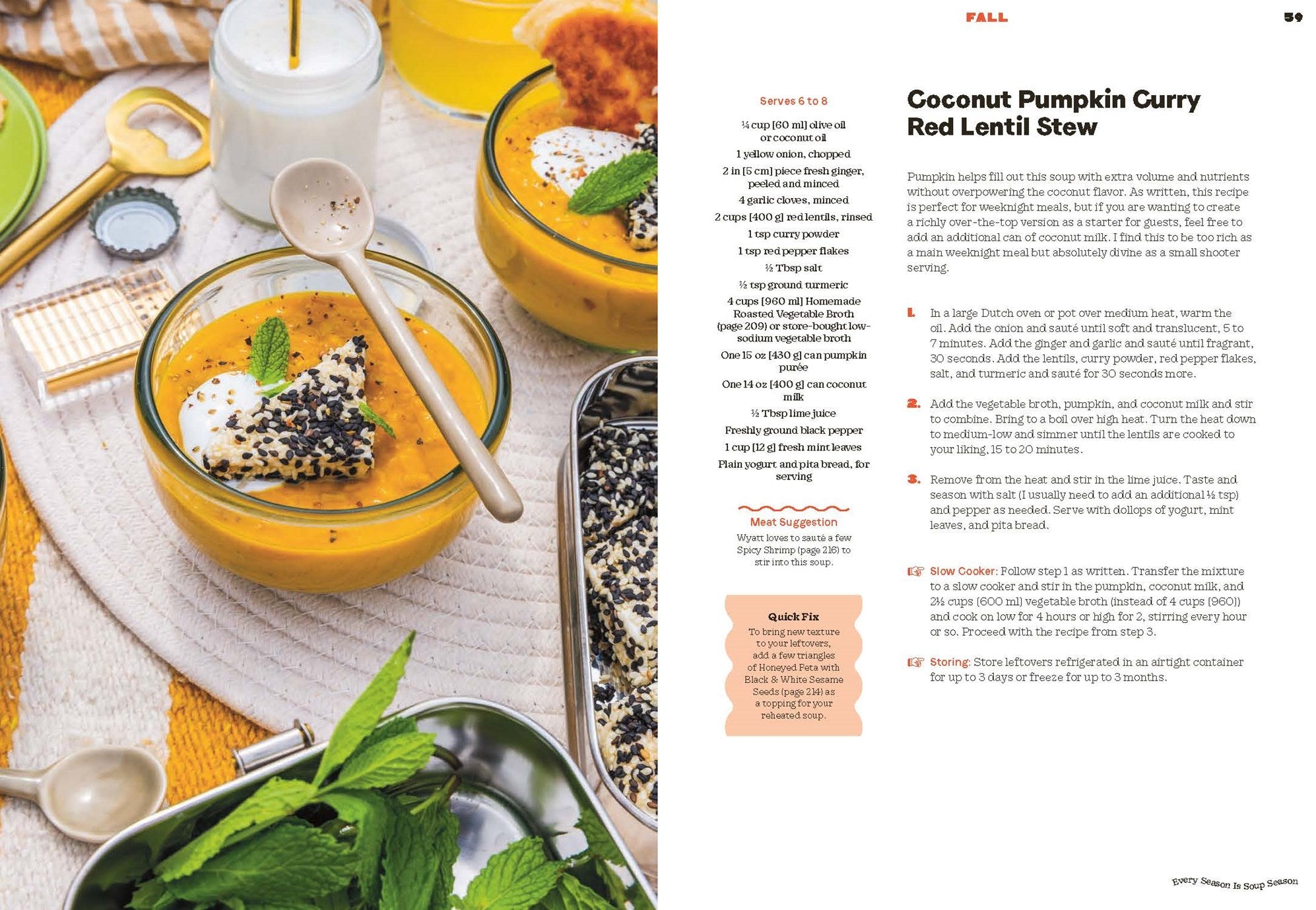 Soup lovers, healthy eaters, and busy parents and professionals will love these veggie-forward recipes that never get old and make weeknight cooking a breeze. Tips for batching and freezing soups and instructions for using an Instant Pot or a slow cooker ensure stress-free meals, with less time in the kitchen and more time at the table. With gorgeous photography and a bonus section on soup accompaniments (think breads, salads, and slaws), Every Season IsSoup Season is a one-stop-shop cookbook. Everyday soups have never been so simple—or so incredibly delicious.