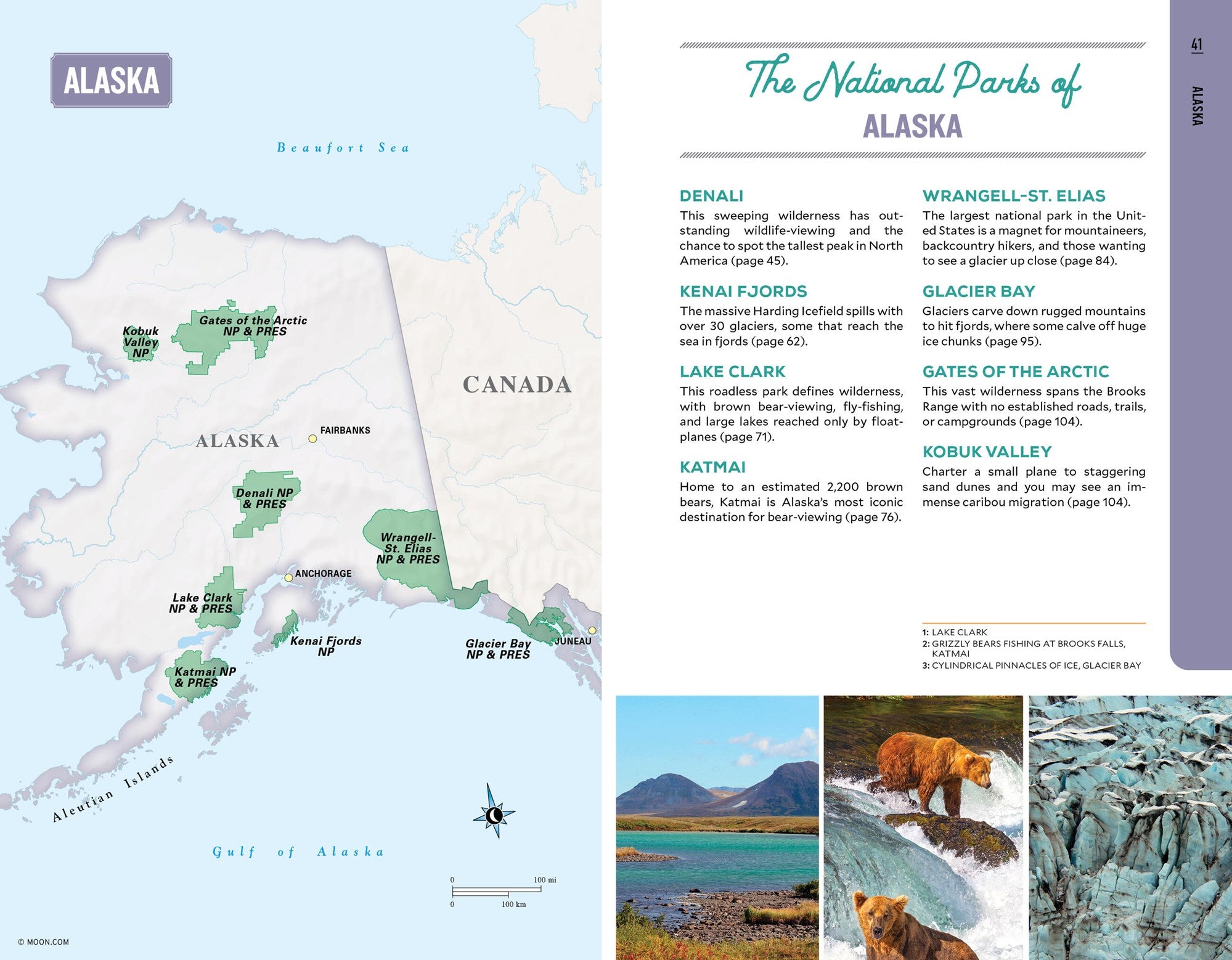 * Coverage of all 63 national parks, from the misty mountains of the east and the redwoods of the west to the glaciers of Alaska and volcanoes of Hawaii, organized by region
