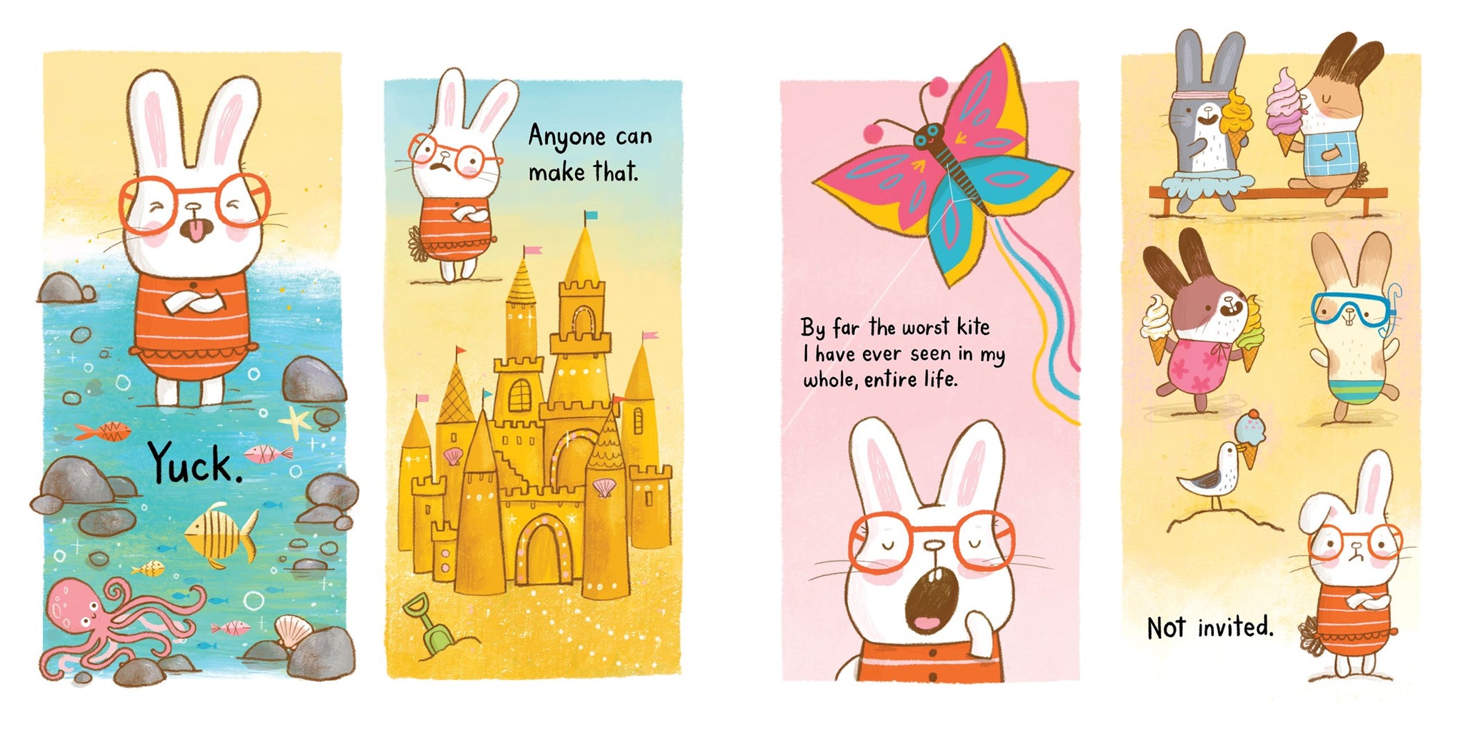For this judgy bunny, nothing's worse than a day at the beach. The sun? Too bright. That view of the blue sky and gleaming sand? Awful. Sand castles? Ugh. Ice cream? Yucky.