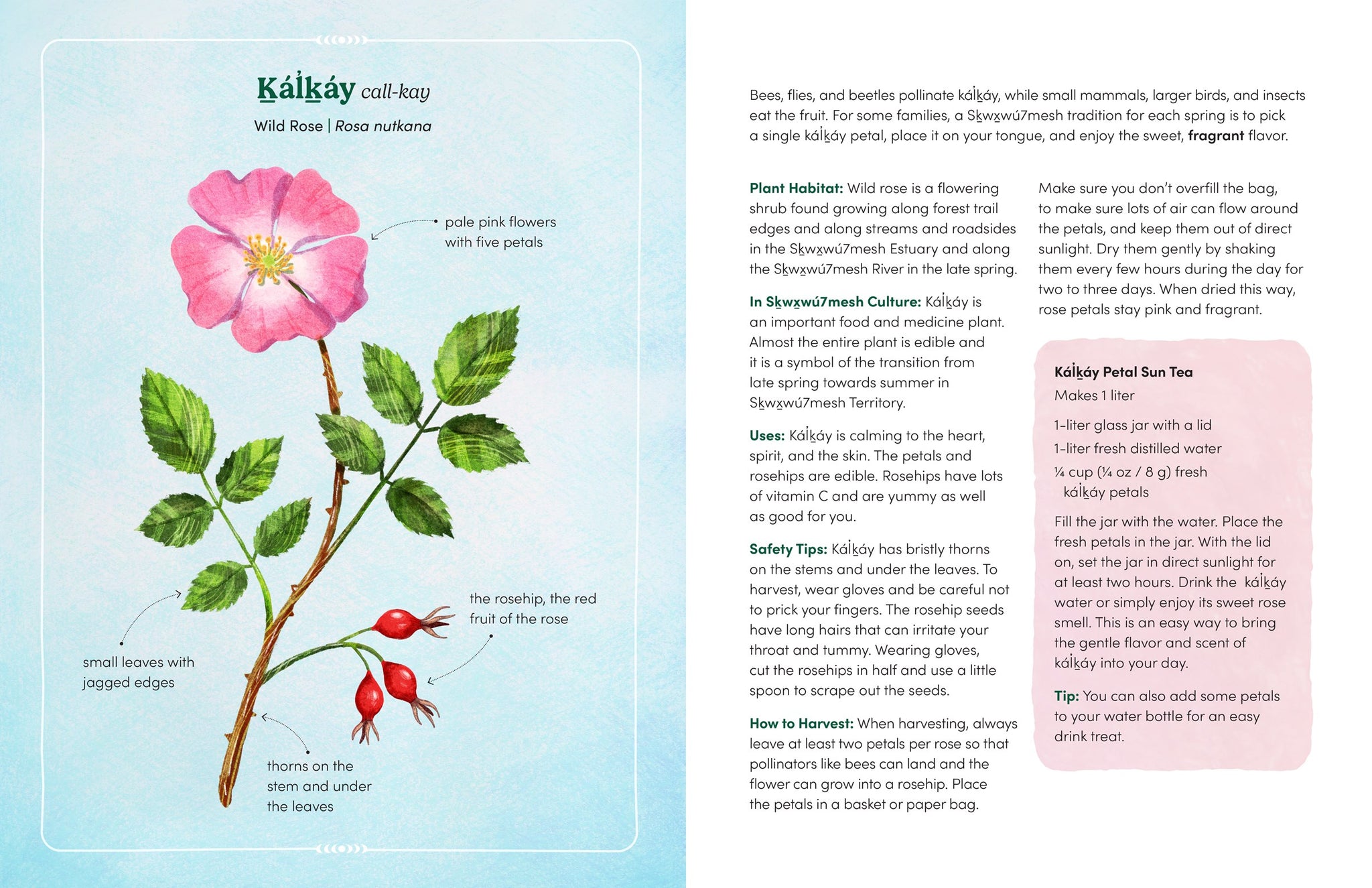 The Land Knows Me concludes with a 15 plant profile directory featuring detailed plant illustrations and kid-friendly botanical drawings to aid in learning about the many great uses for plants and the native history behind them. You’ll meet plants like: