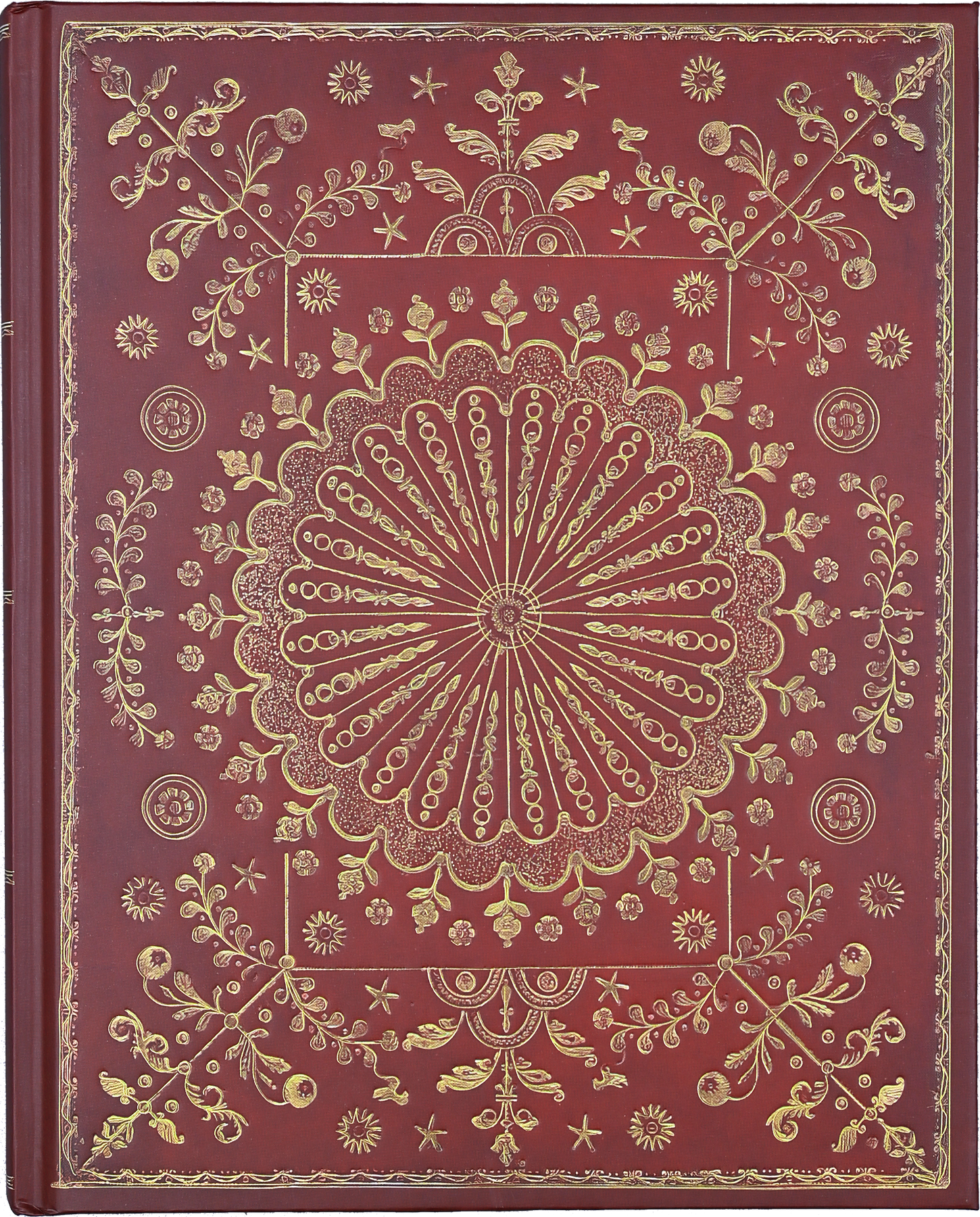 Beautiful journal pays homage to a gold-tooled ''wheel'' binding created in Edinburgh, Scotland, in the 1700s. The distinctive Scottish wheel style is said to draw its lineage from European ''fan'' bindings of the preceding century.