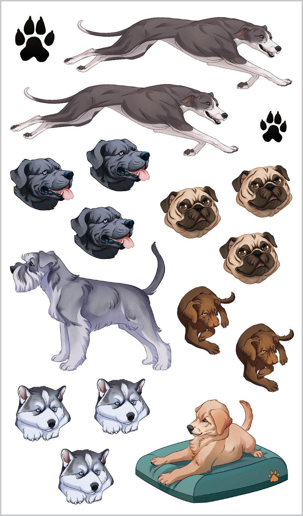 60 colorful temporary tattoo designs that dog-loving kids will love to wear, with adorable images of a wide range of breeds, puppies, and playful poses.