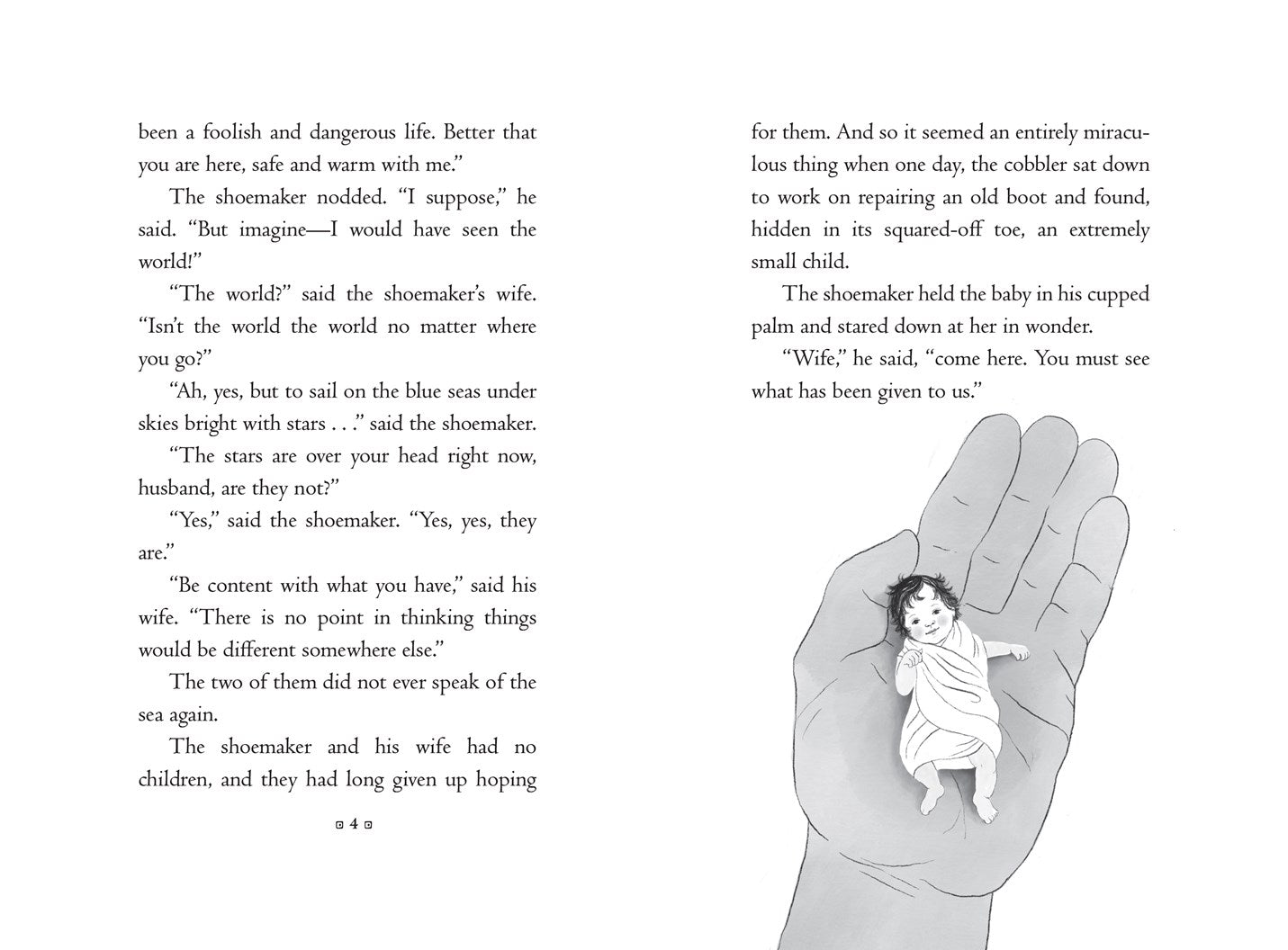 When a shoemaker discovers a tiny girl (as small as a mouse!) in his shop, he takes her in, names her Evangeline, and raises her as his own. The shoemaker’s wife, however, fears that Evangeline has bewitched her husband, so when an opportunity arises to rid herself of the girl, she takes it. Evangeline finds herself far from her adopted father and her home, a tiny girl lost in the wide world. But she is brave, and she is resourceful, and with the help of those she meets on her journey—including a disdainful and self-satisfied cat—she may just find her way again. Return to the magical land of Norendy in this third original fairy tale by renowned storyteller Kate DiCamillo, perfect for savoring alone or for reading aloud with someone you love. Graced with exquisite black-and-white illustrations by Sophie Blackall, this timeless story of a girl and her father will make you believe in the impossible.