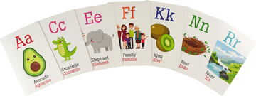 * How to use: Hold up a card and say the letter out loud. Have your child repeat the letter, and then have them name the object on each card that begins with that letter. / Cómo utilizar: Sostenga una tarjeta y diga la letra en voz alta. Pídale a su hijo que repita la letra, y luego pídale que nombre el objeto en cada tarjeta que comience con esa letra.