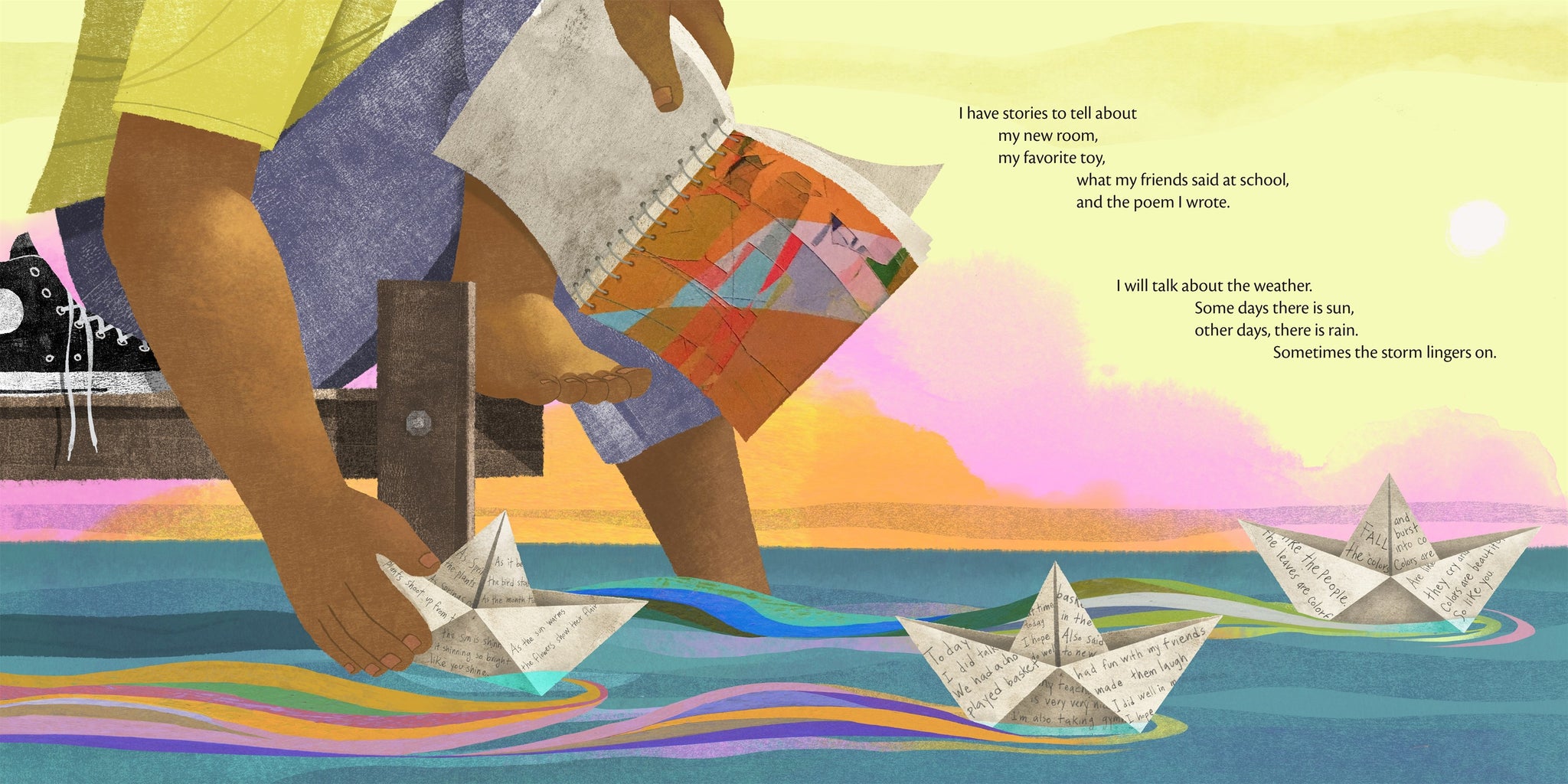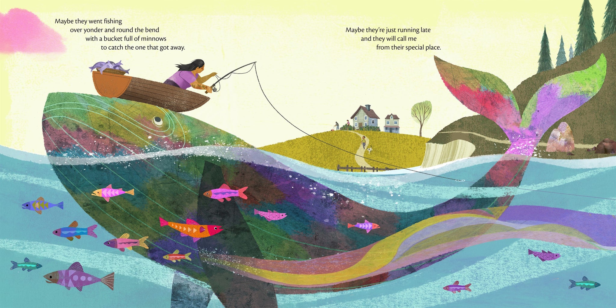 It feels like she’s somewhere far away, so the boy finds new ways to share stories about his day, hoping she can hear him.