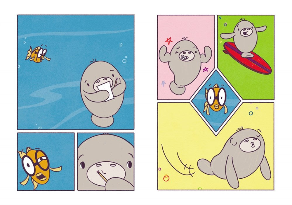 Marlow the manatee isn’t exactly superhero material. He sleeps a lot, eats a lot, toots a lot, and has never ventured out of his safe saltwater bay. And yet the sweet bumbling Marlow dreams of adventure, of derring-do, and of making a difference. He dreams of being a hero like Aquaman, of whom Marlow is a mega fan! But when a series of impossible events leads to Marlow having superpowers and not only meeting his hero but getting to team up with Aquaman himself…suddenly Marlow isn’t so sure he’s ready for his dreams to come true.