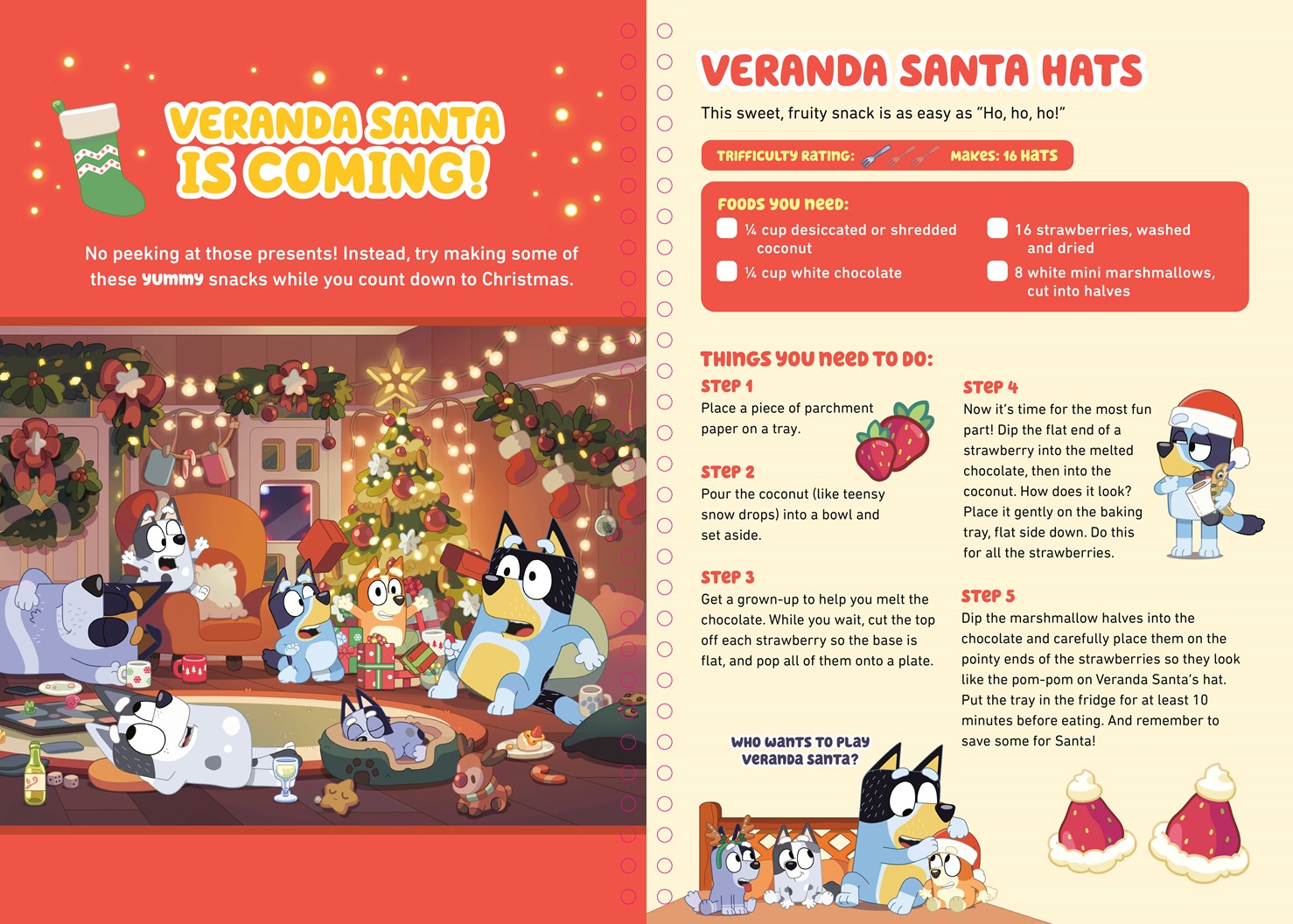 Learn how to make strawberry Veranda Santa hats, Bartlebee toast, roast pork with crackling, and more! This cookbook includes 13 yummy recipes that are perfect for making a deliciously fun Christmas with your friends and family, and the book can lay flat to make it easy to read while cooking.