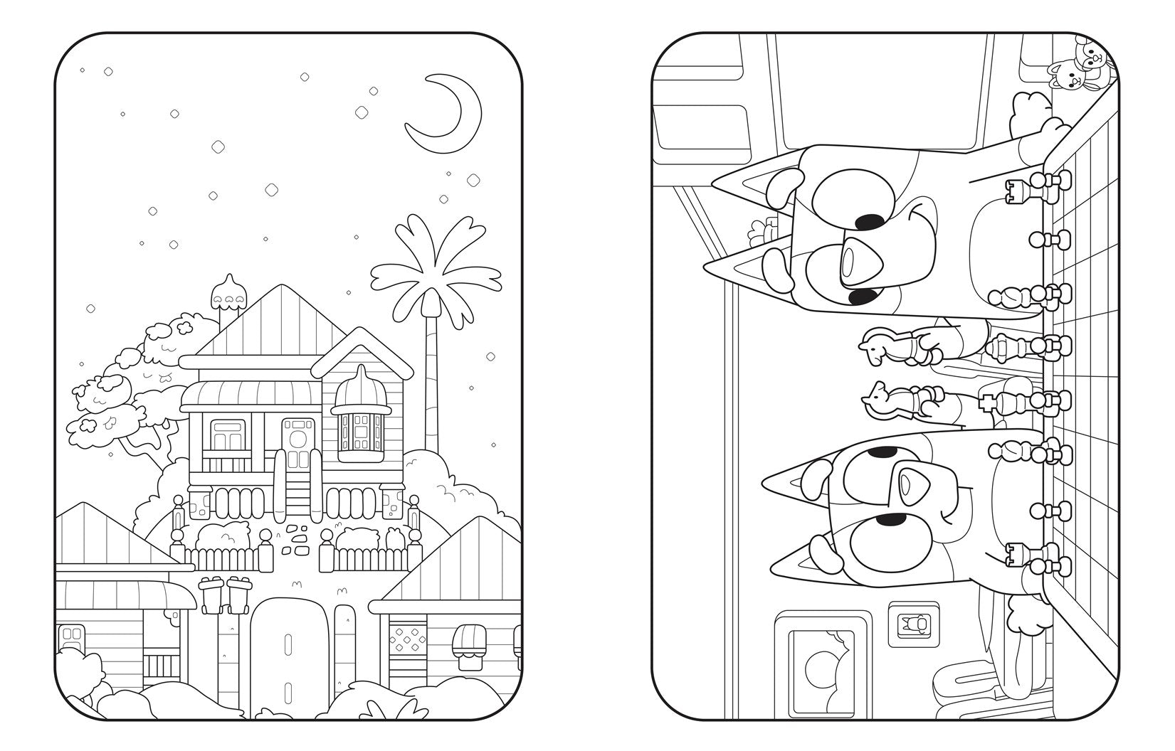 Draw Bluey and Bingo going camping, playing Barky Boats, being mermaids at the beach, and more! This coloring book bind-up includes 144 pages of Bluey and all her adventures with her friends and family. Perfect for road trips, rainy days, and plane rides!