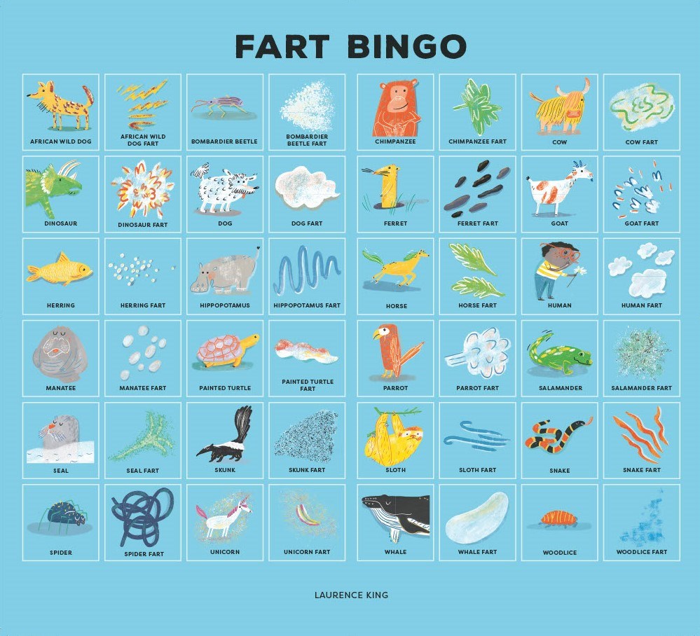 Be the first to fill your bingo card with animals there hilariously illustrated farts and win BINGO