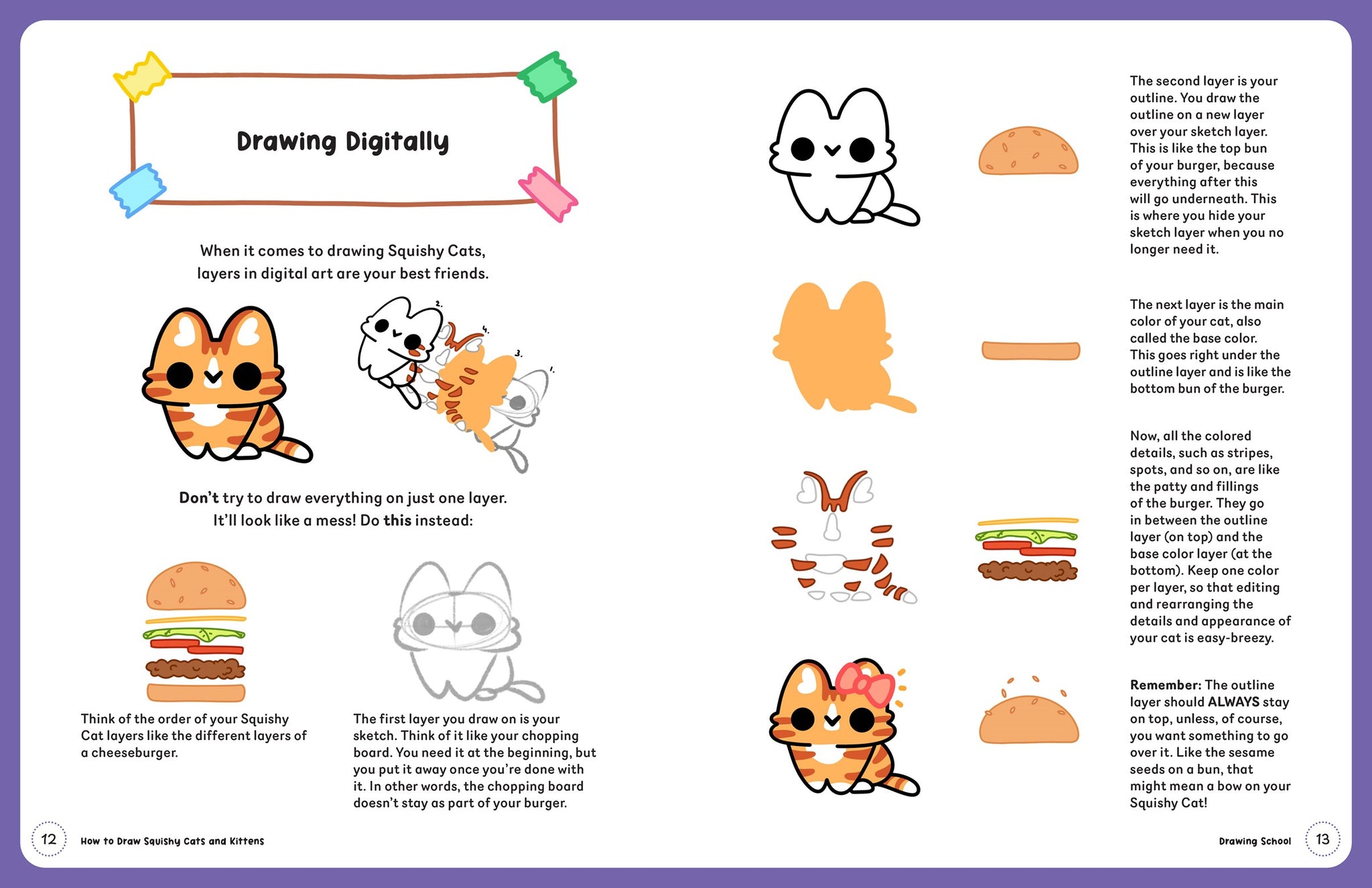 From Vera Kay, a rising young artist who goes by @veekachoo online, How to Draw Squishy Cats and KittensΒ teaches you to draw cats in all kinds of cute positions and situations, including sitting, snuggling, sleeping, swatting, and more. This fun book is divided into chapters focusing on:
