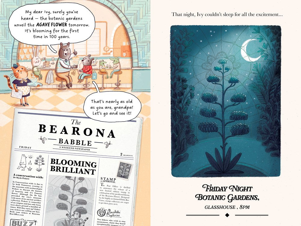 When the rare Agave flower goes missing from Bearona's botanic gardens, it's up to super-sleuth Ivy and her grandpa Bearlock Holmes to crack the case. The first book in a brand-new mystery fiction series, this interactive book features 15 puzzles that are woven into the action, so readers can feel immersed in the exciting detective plot. With adorable illustrations and cozy text that blends mystery with real world science and nature, this new early chapter book series is perfect for budding sleuths.