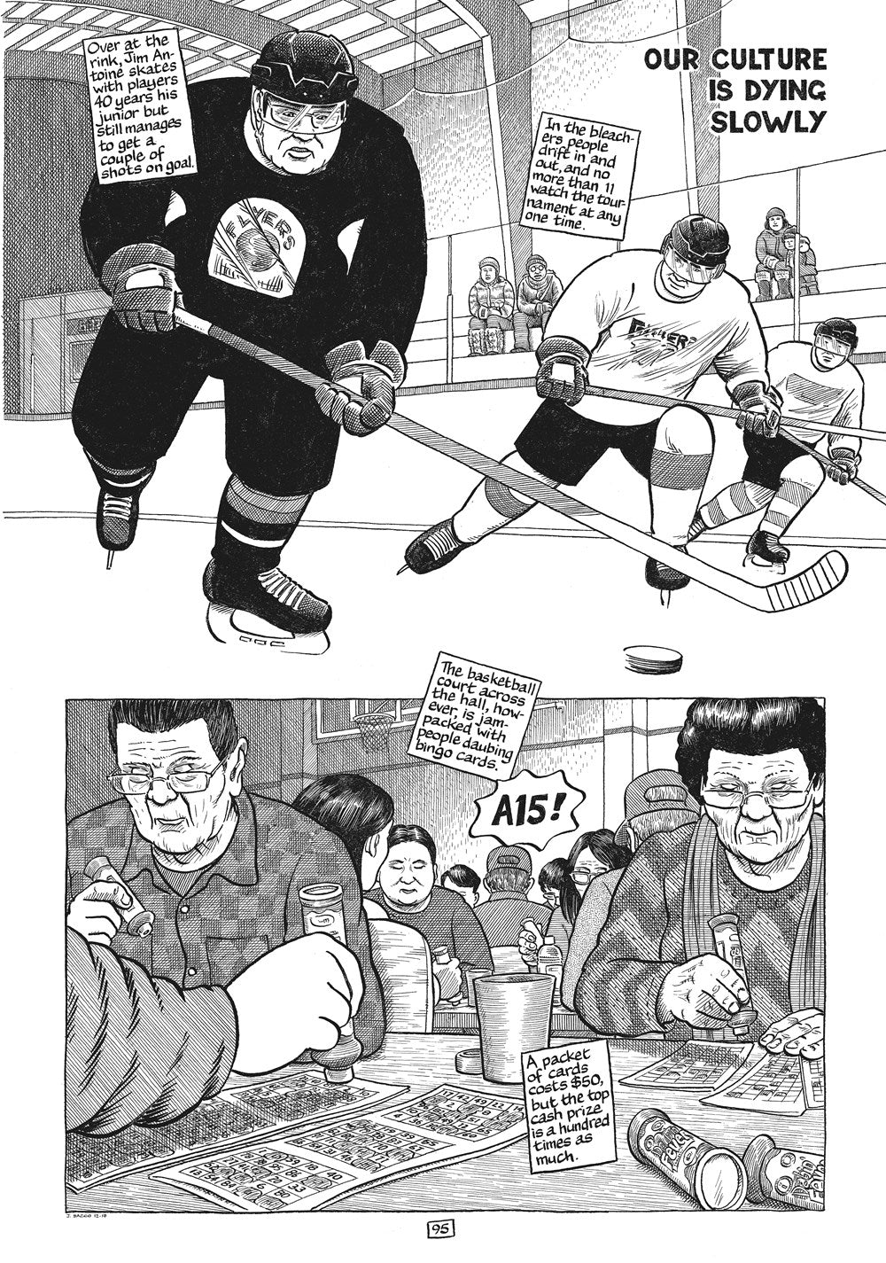 In Paying the Land, Joe Sacco travels the frozen North to reveal a people in conflict over the costs and benefits of development. The mining boom is only the latest assault on indigenous culture: Sacco recounts the shattering impact of a residential school system that aimed to “remove the Indian from the child”; the destructive process that drove the Dene from the bush into settlements and turned them into wage laborers; the government land claims stacked against the Dene Nation; and their uphill efforts to revive a wounded culture.