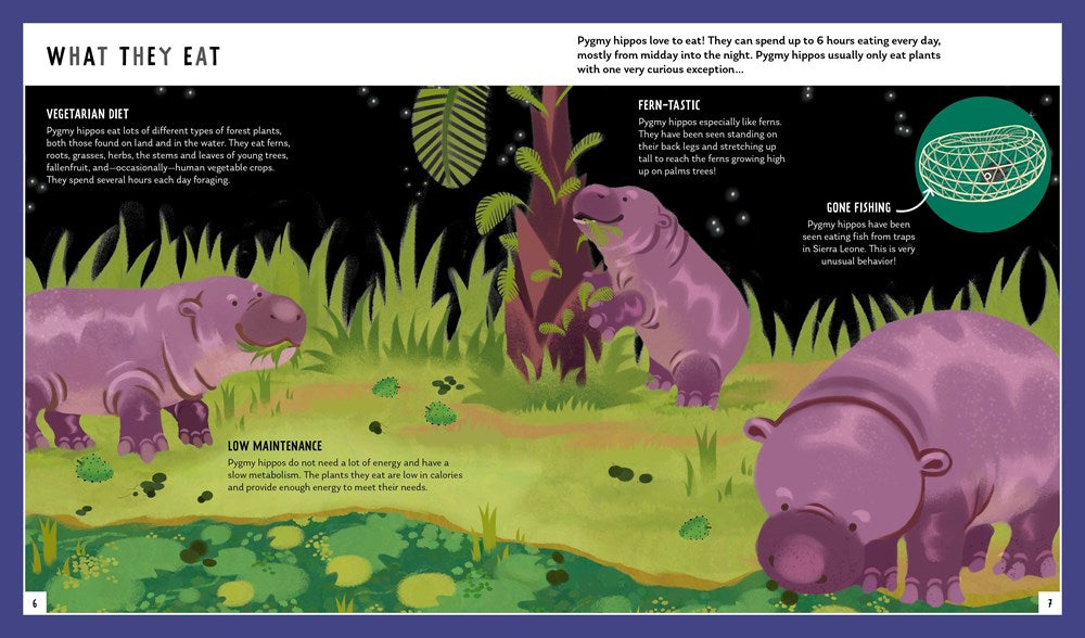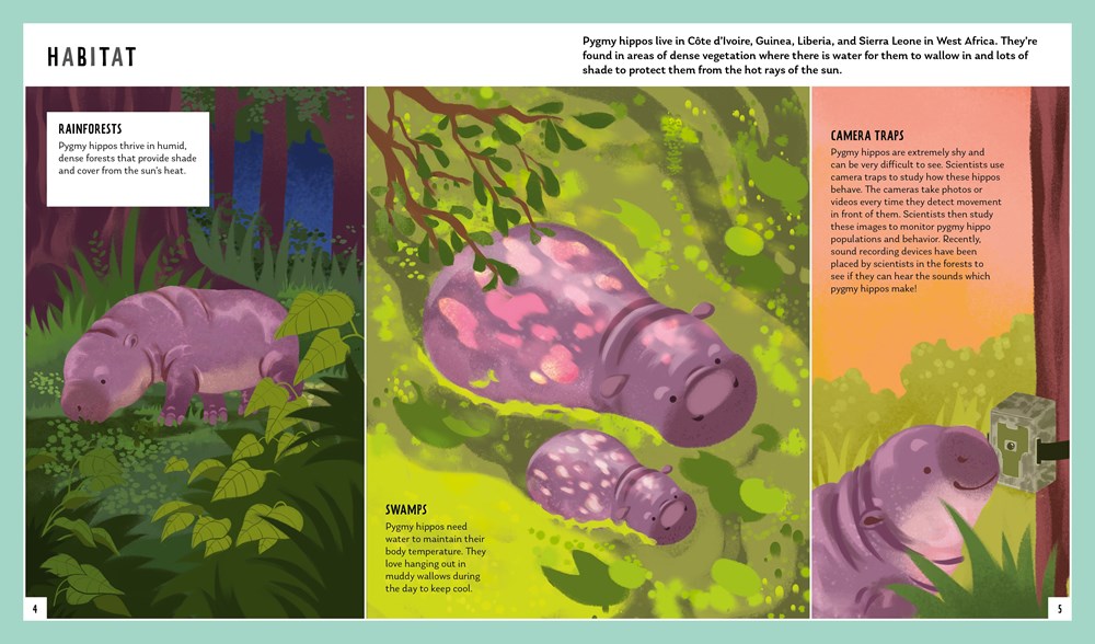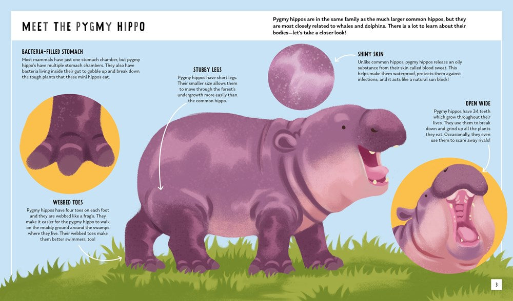 An illustrated first field guide to the adorable pygmy hippo from expert Dr. Fiona Sach, featuring illustrations by Lisa Maria.