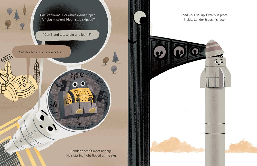 After embarking on her first solo mission to place a satellite into orbit, Rocket is back, and sheβs headed on a lunar expedition! But this time sheβs not going alone. Instead of exploring, Rocketβs mission is to drop off the spacecraft, Lander, and then return to Earth while Lander investigates the Moon's surface.