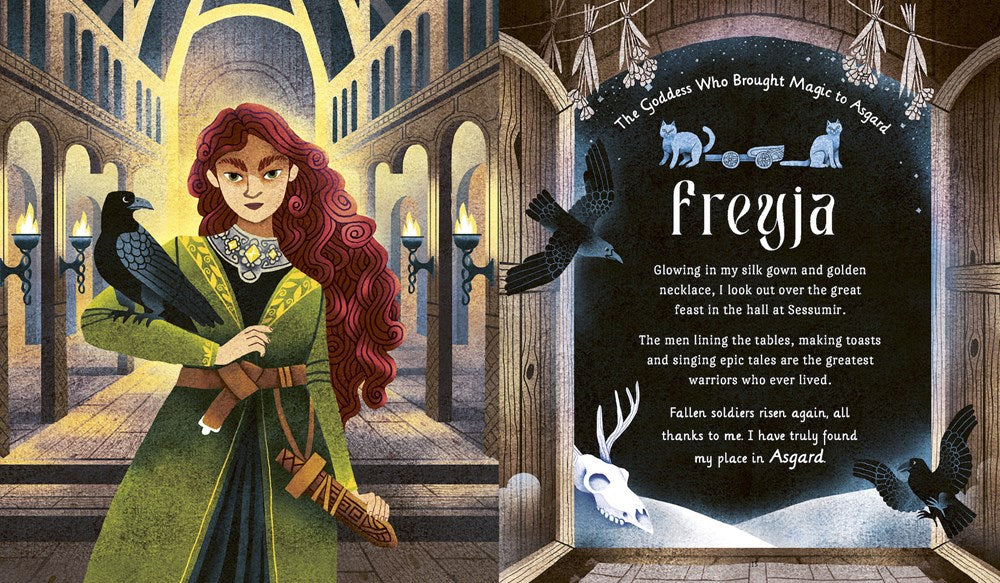 Meet Freyja, the enchanting goddess who forges a peace treaty between the Aesir and Vanir and brings magic and harmony to Asgard; ski through the mountains with Skadi on her quest for vengeance after her father’s death; and watch Loki, the shape-shifting trickster, recount the rescue of Thor’s hammer while disguised as a maid in this illustrated treasure trove of eight tales.