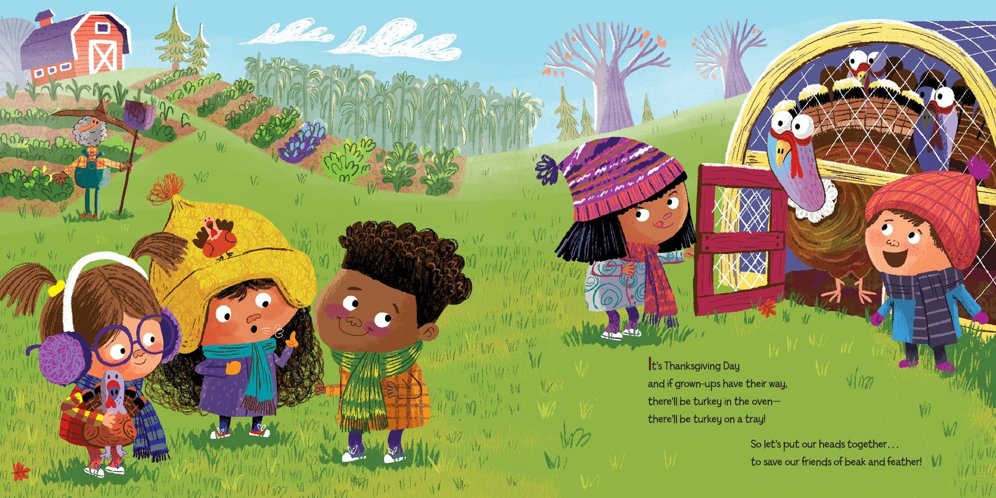 Follow along as a group of kids get crafty and decide to save some turkeys by coming up with a cornucopia of creative and silly disguises for their feathered friends.
