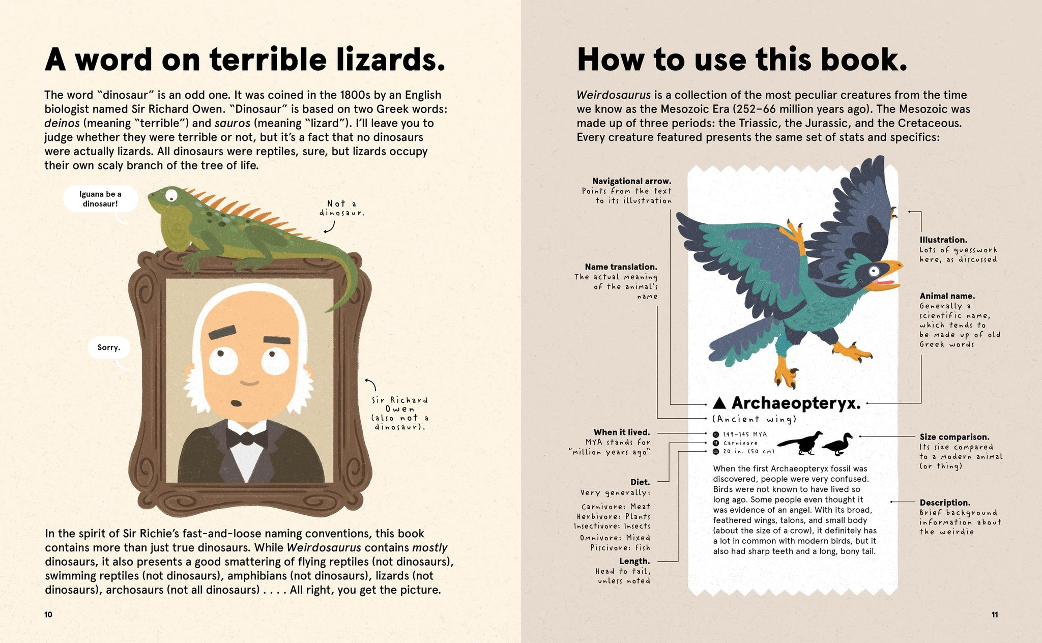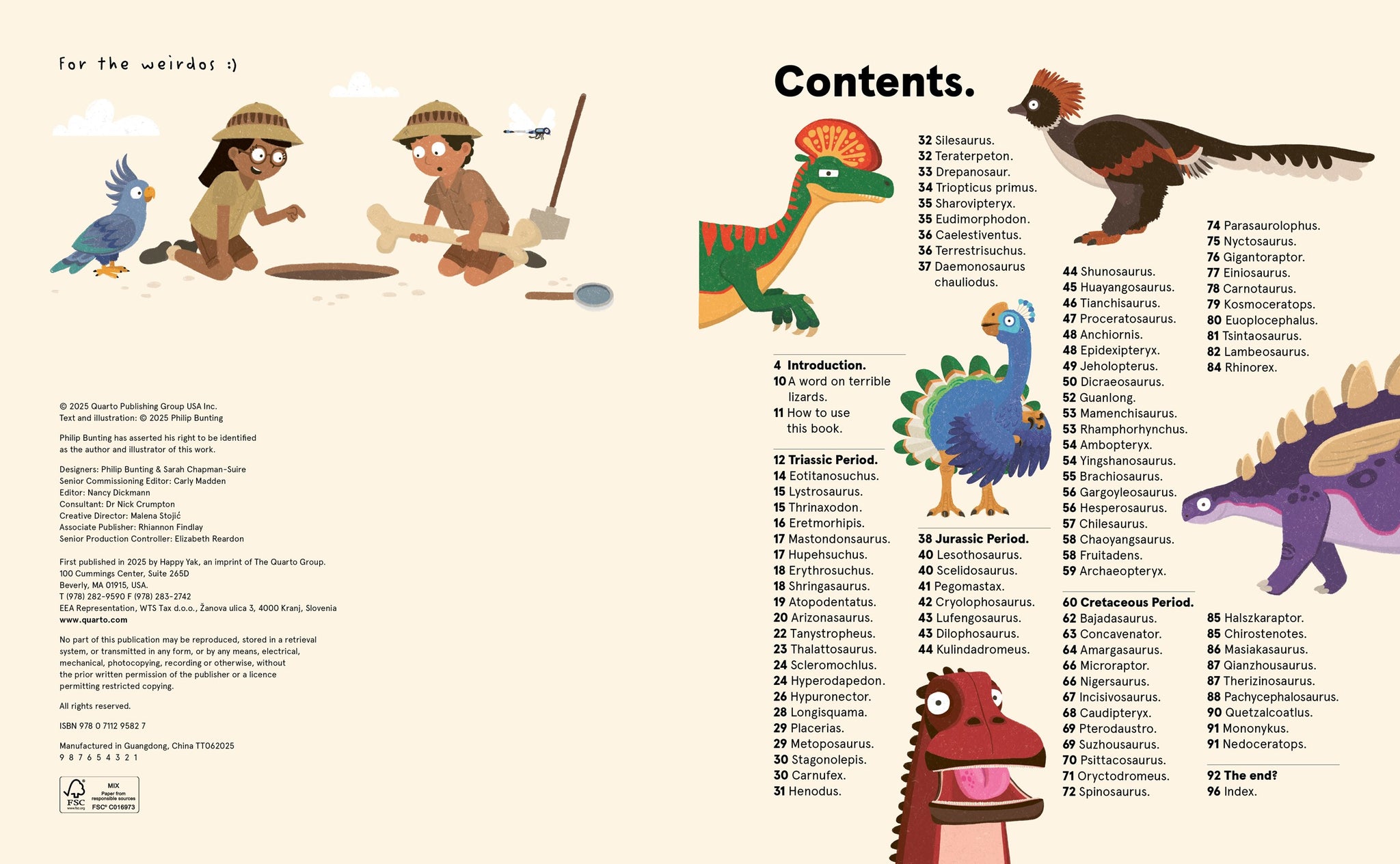 Organized chronologically, each creature featured includes vital stats and facts, scale diagram, Latin name and translation, and a pronunciation guide. Each chapter describes the most bizarre dinosaur residents of that period, with Philip Buntingโs trademark humour and style, including funny annotations, witty jokes, fabulous facts, and incredible illustrations.