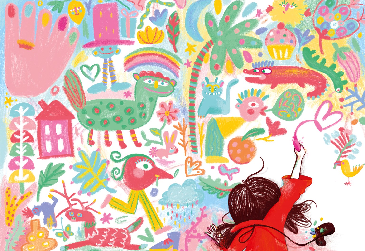 Finally, Emily comes to a place without a door. She gets out her chalk and draws one, then adds a doorknob, and goes right in. And when someone knocks on her door, she says, "The door is open!"