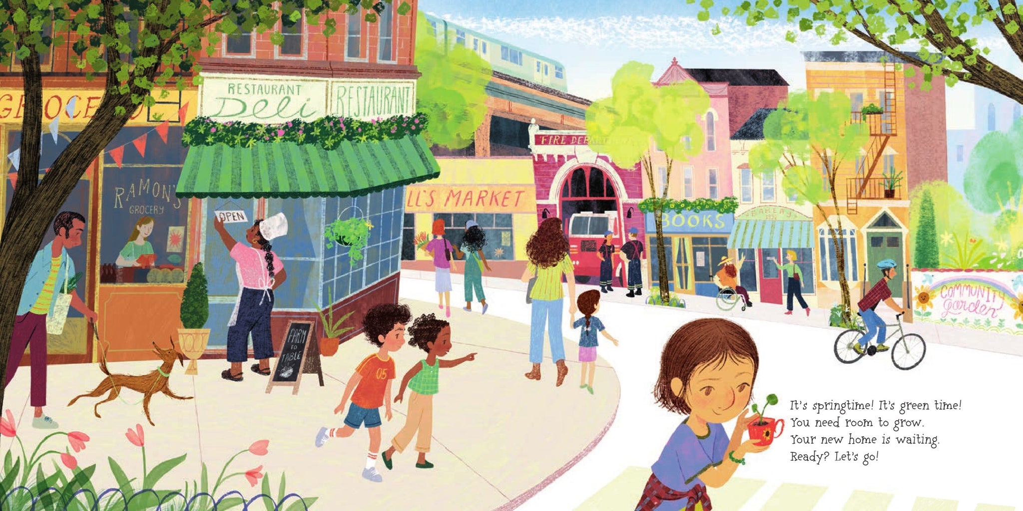 A child and a seedling find themselves at home in their local urban community garden. With the help of firefighters, chefs, shopkeepers, and many more members of their community, they grow alongside the flowers, vegetables, friendships, and more all summer long, together.