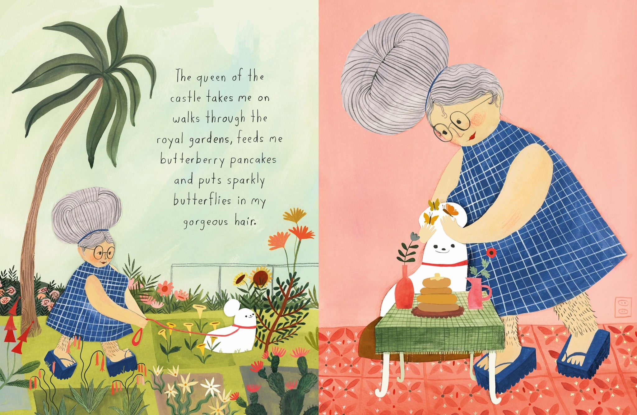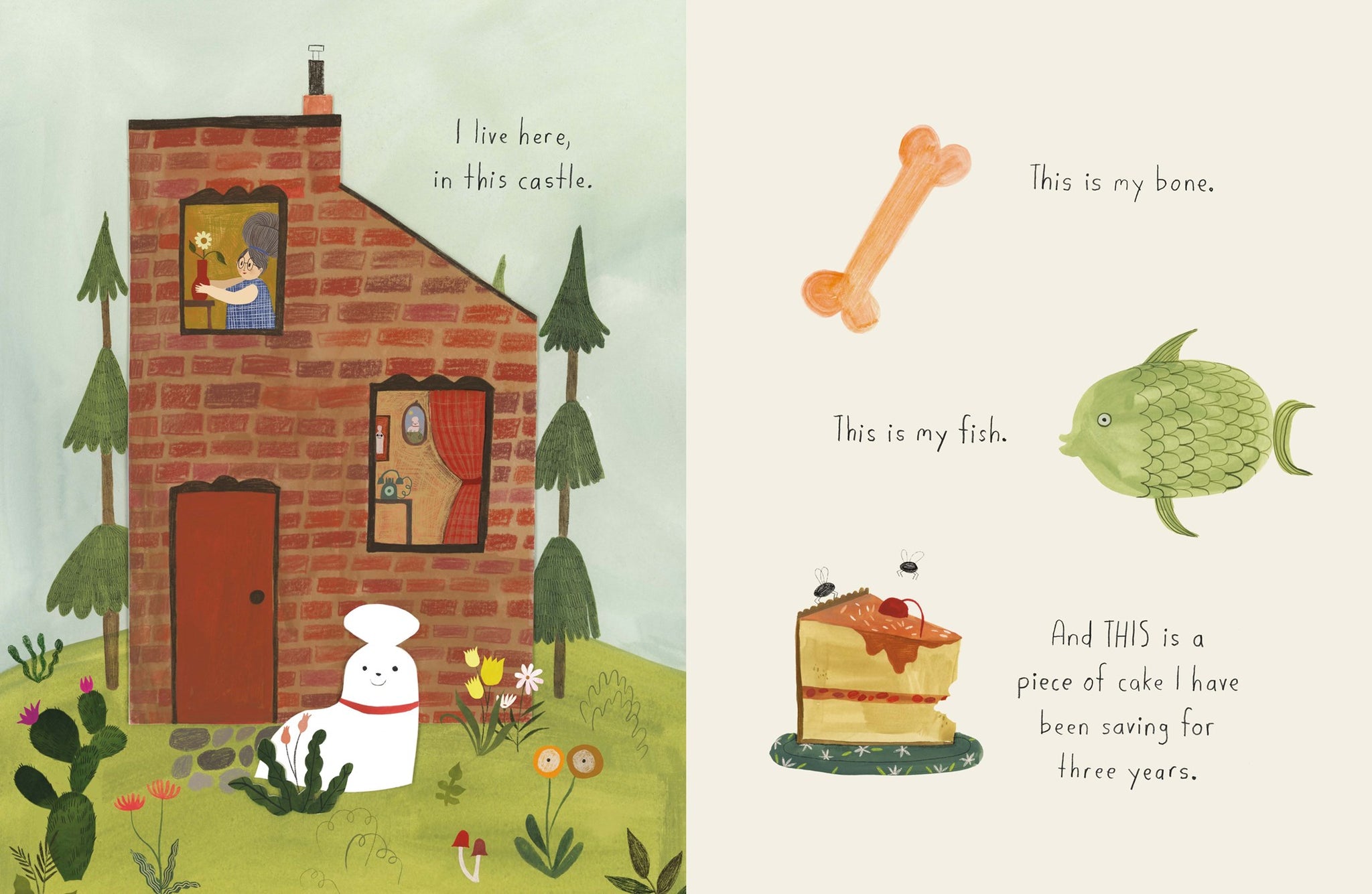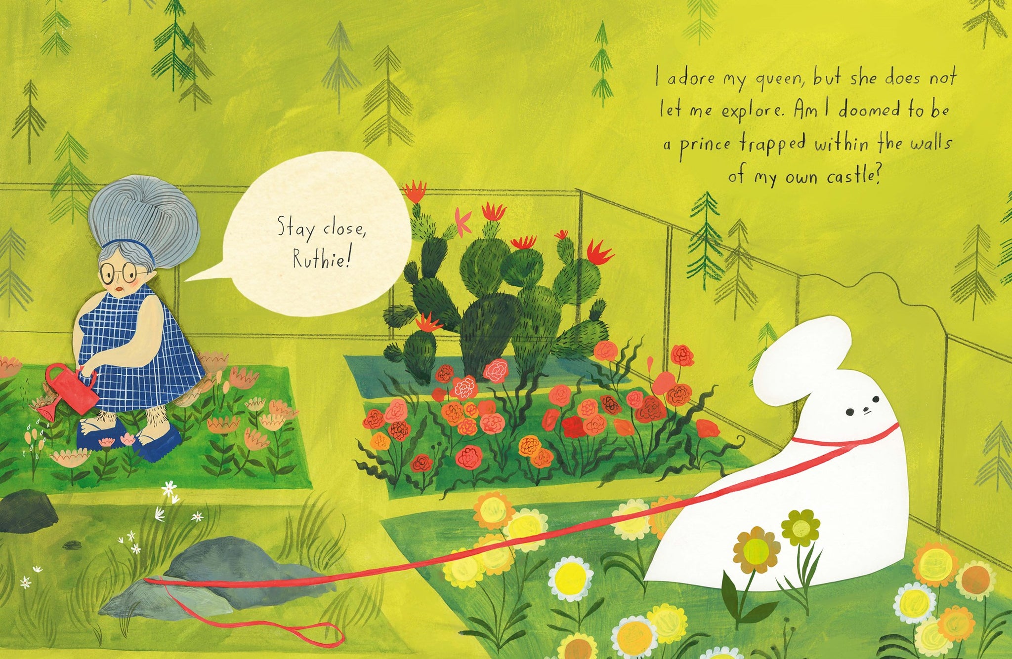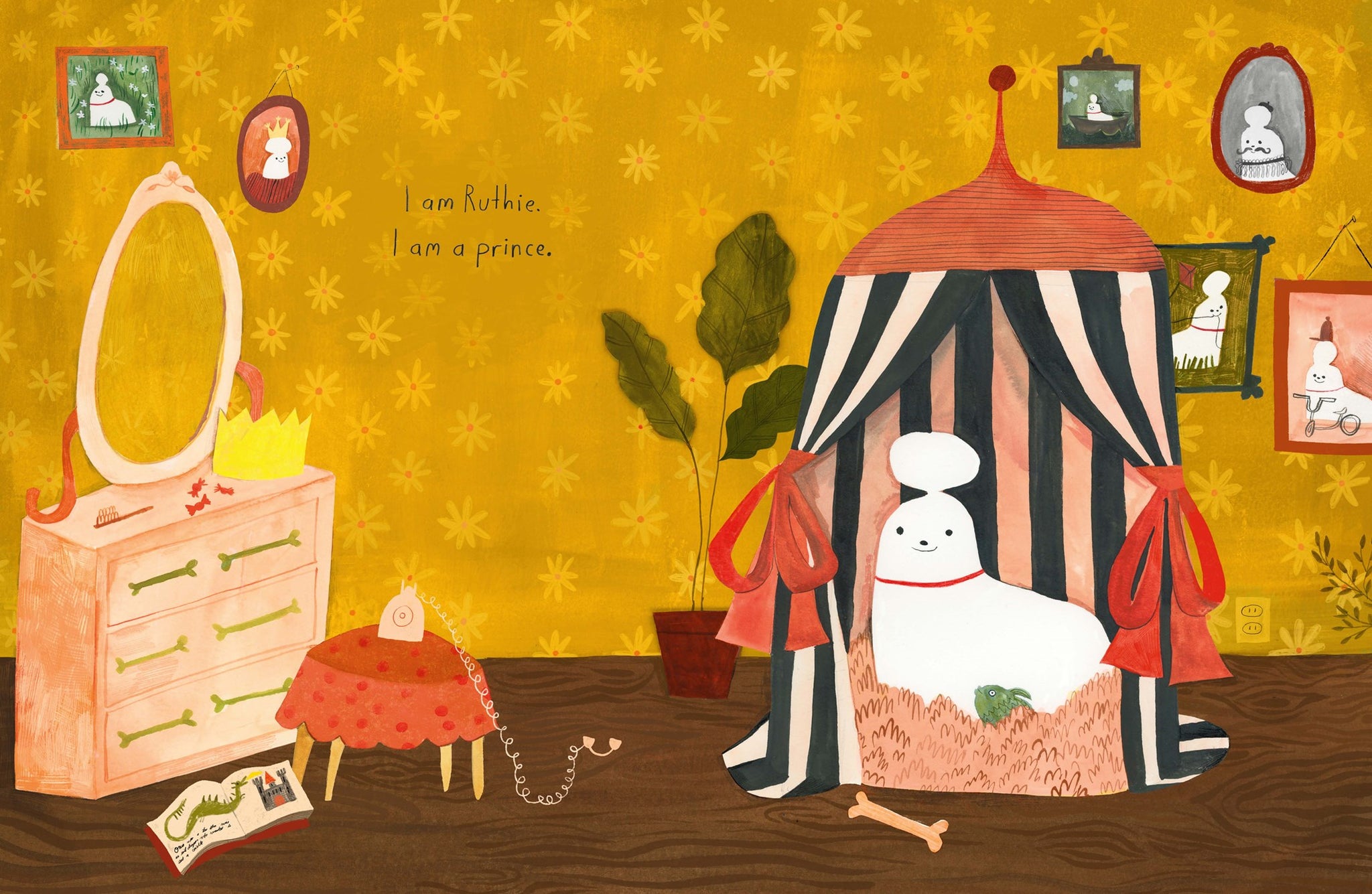 Ruthie is a prince (a dog) who has it all- a bone, a fish, and a piece of cake he's been saving for three years. He lives in a castle (a house), is beloved by his queen (his owner), and enjoys beauty-naps, butterberry pancakes and staying squeaky clean with a daily bubble bath. But still, Ruthie longs to explore beyond the castle walls.