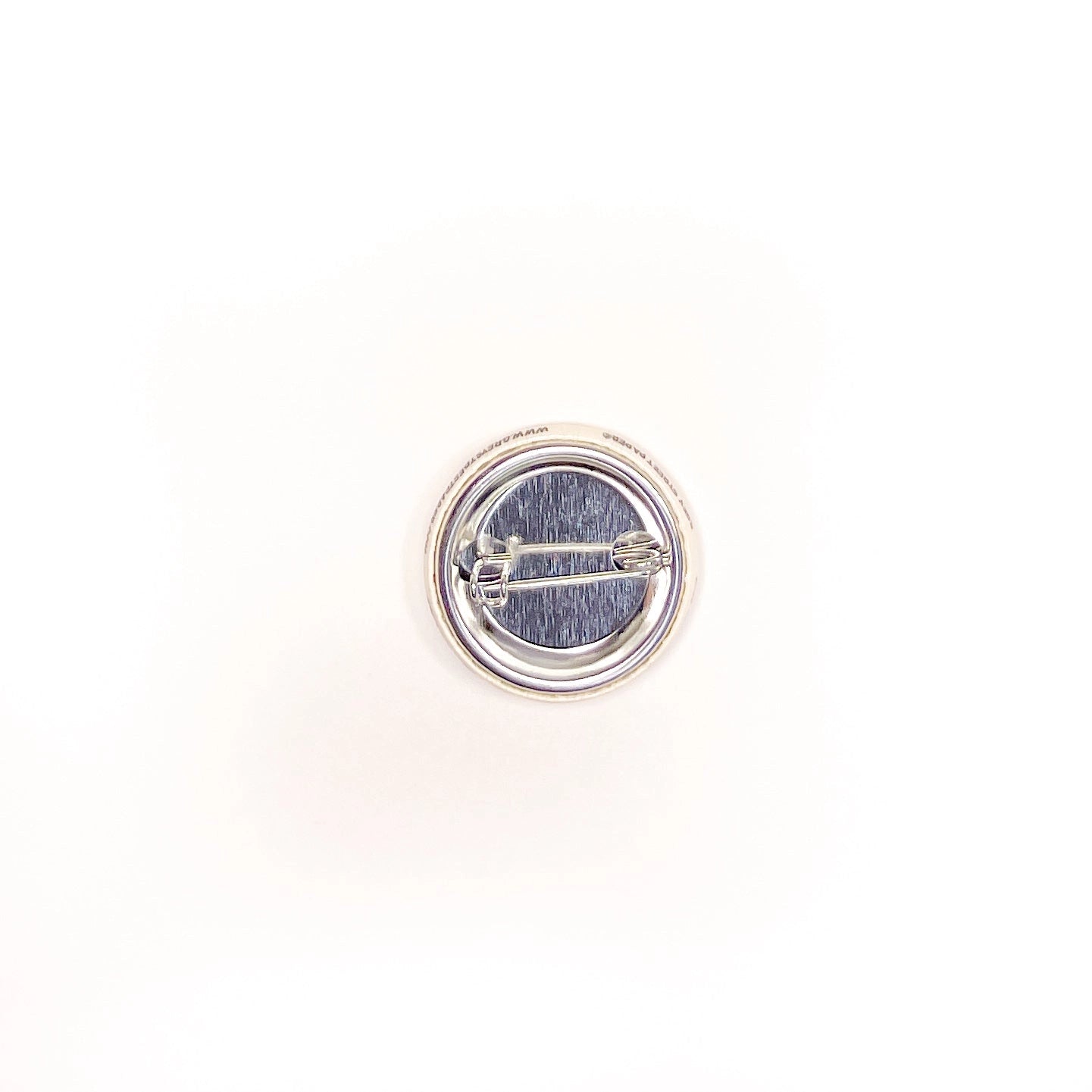 - 1.25" pin back button. - Metal base / gloss front. - Attached to a backing card. - No Packaging.