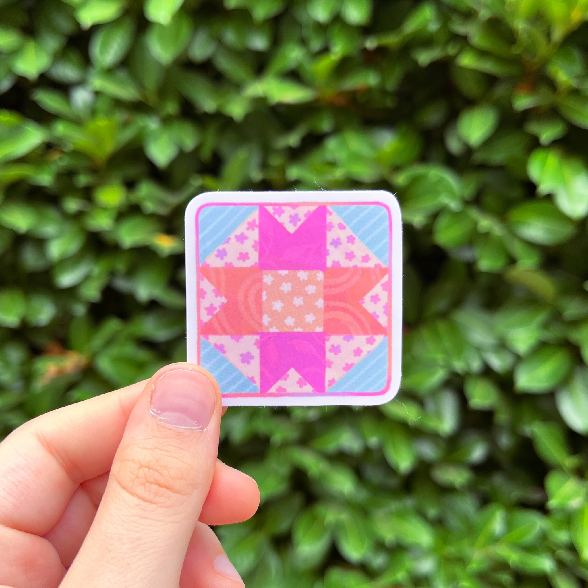 A cozy quilt for fans of sewing, cottagecore, and fun colors. Perfect for decorating whatever you please! - 2 inches square - Sturdy Vinyl - Durable and water resistant