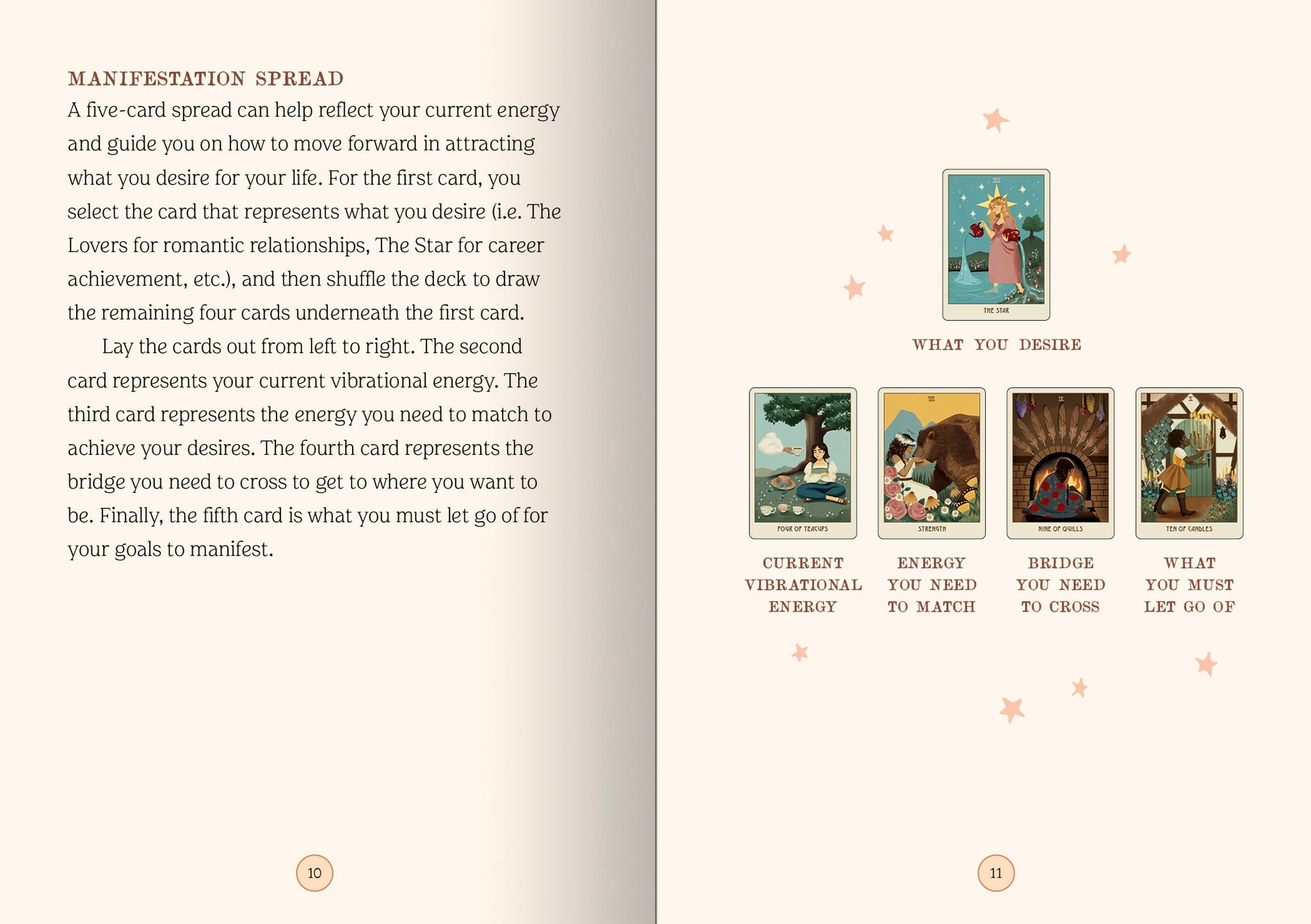 Cottage Magic Tarot offers a cute and cozy deck for anyone who finds inspiration in the enchanting world of cottagecore. Featuring beautifully illustrated cards with unique suits—teacups, biscuits, quills, and candles—this tarot deck brings the charm of pastoral simplicity to the spiritual world of tarot reading.