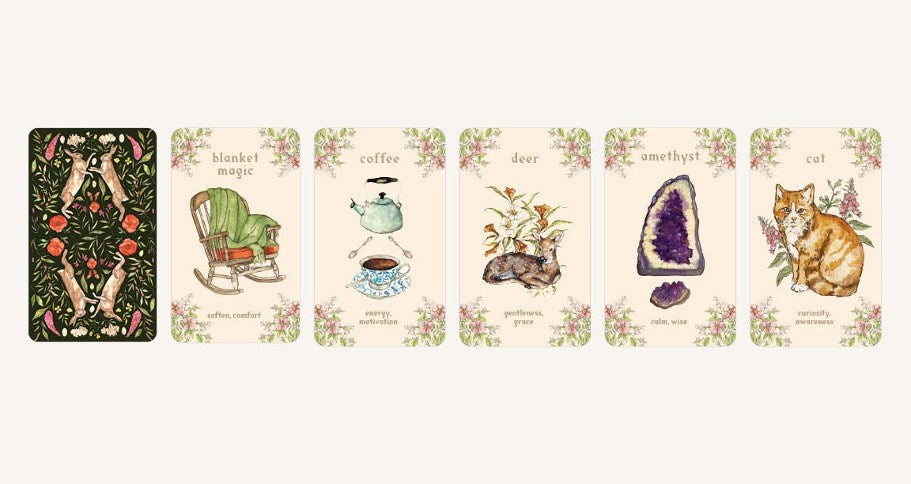 From the host of #1 witchcraft podcast The Comfy Cozy Witch, Jennie Blonde has created a deck that represents her singular brand of authentic and comforting witchcraft. Jennie has used divination to tell fortunes since childhood: Her mother introduced her to the runes, her grandmother to spirit boards, and all of the women in her extended family—her mother, grandmother, and aunt—often sat around the kitchen table together, reading each other's cards. This deck is Jennie's way to process those cherished memories into a warm and gentle method for understanding the past, present, and future. The cards represent qualities, tools, and spiritual and animal energies. A regular practice working with this deck will help develop intuition and self-knowledge, as well as a feeling of protection that will strengthen any user's path forward through the world. Each card is accompanied by keywords, a mantra, a message, and a prompt for introspection that can make readings multifaceted and rewarding in a unique and special way.